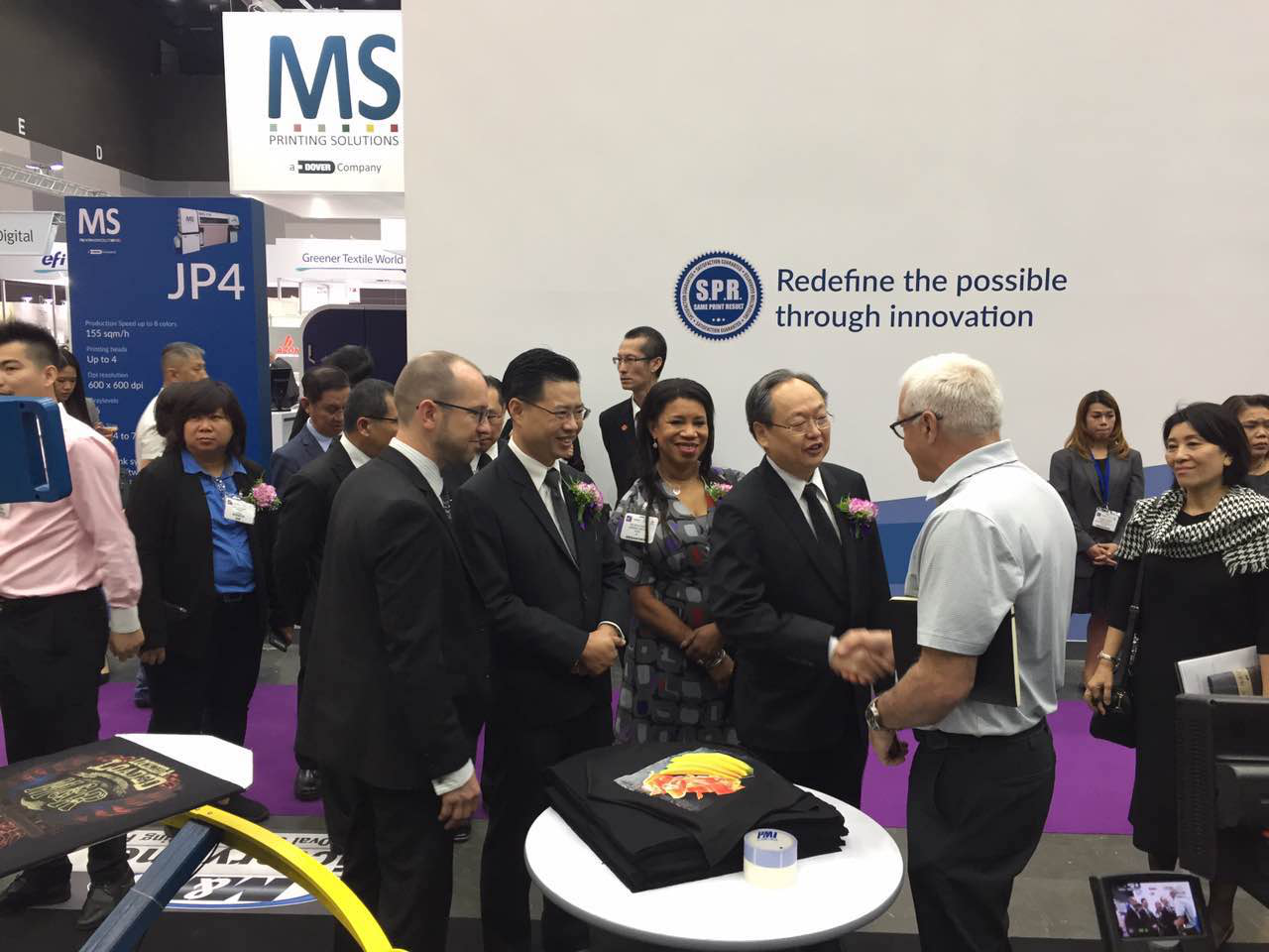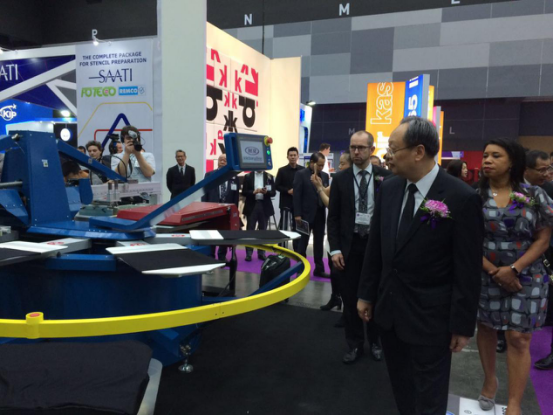 對于VictoryOne®來說,今天最“長臉”的應(yīng)該還是得到展會現(xiàn)場的各位客戶的認(rèn)可,“誠拓出品,必屬精品”,來參觀VictoryOne®的其中一位可是重量級嘉賓了。他是泰國內(nèi)閣成員之一,泰國商業(yè)部副部長頌提叻(Sontirat Sontijirawong),當(dāng)天早上,他在其他泰國高級官員陪同下來到了VictoryOne®展臺,親切的慰問了展臺的工作人員,并饒有興致參觀VictoryOne®,仔細(xì)了解VictoryOne®的產(chǎn)品性能以及產(chǎn)能等各方面的信息,對誠拓?cái)?shù)碼的制造工藝與科研實(shí)力機(jī)遇了很高的好評。