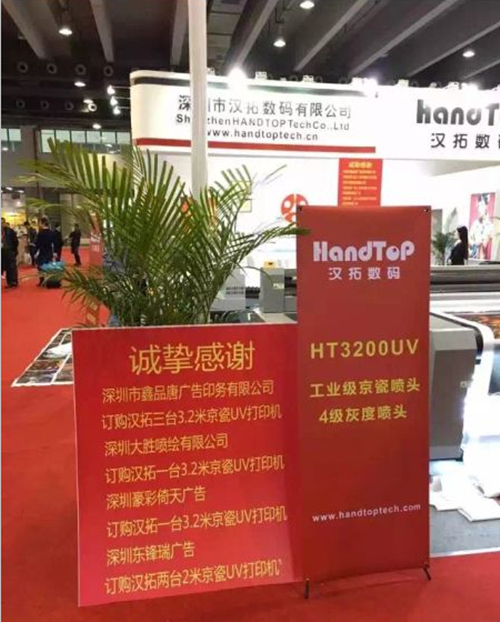 2016年2月24-27日漢拓數(shù)碼參加廣州國際標識及LED展覽會,此次展會匯聚廣告行業(yè)各種前沿趨勢及新技術(shù)、新材料等的展示,眾多新時代科研成果。展會上漢拓的參展產(chǎn)品獲得了眾多觀展人士的一致好評,在展會參展過程中就有客戶當(dāng)即定下10臺京瓷噴頭UV打印機的優(yōu)秀業(yè)績,足以證明漢拓數(shù)碼的UV打印機在打印效果與機器質(zhì)量上無可挑剔。