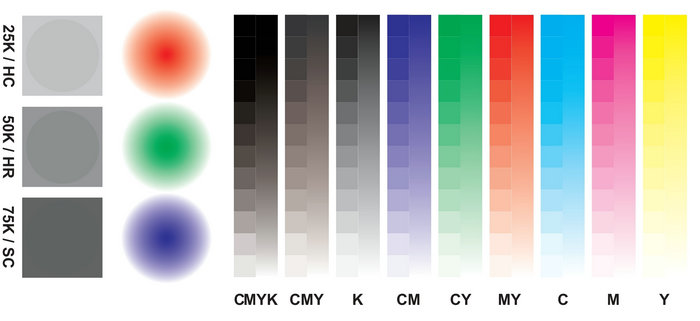 眾多的UV打印機(jī)廠家也在如何進(jìn)一步提升噴墨打印精細(xì)度方向進(jìn)行著孜孜不倦的研究。UV噴墨打印是以青色 (C) 洋紅色(M) 和黃色 (Y) 三原色減色法呈現(xiàn)顏色。CMY這三種油墨能混合出最多的顏色,而且色域最寬。而三原色并不能混合出真正的黑色,需要有專門的黑色(K),所以UV打印機(jī)常說的四色也就是CMYK。